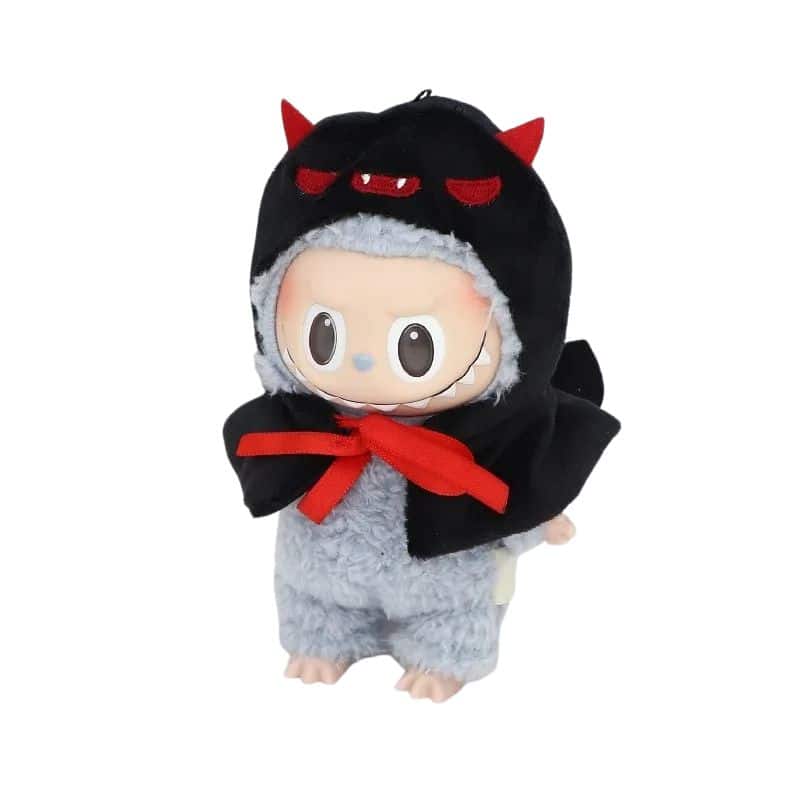 Le Déguisement Halloween Style Diable avec Trident pour Labubu envoûtera tous les regards avec son tissu noir. Conçu spécialement pour un Labubu de 17cm, ce modèle Diable transforme votre figurine en une créature espiègle. Ajoutez une dimension diaboliquement charmante à votre collection avec le trident inclus. Bien que la poupée ne soit pas incluse, ce déguisement garantit une métamorphose saisissante.