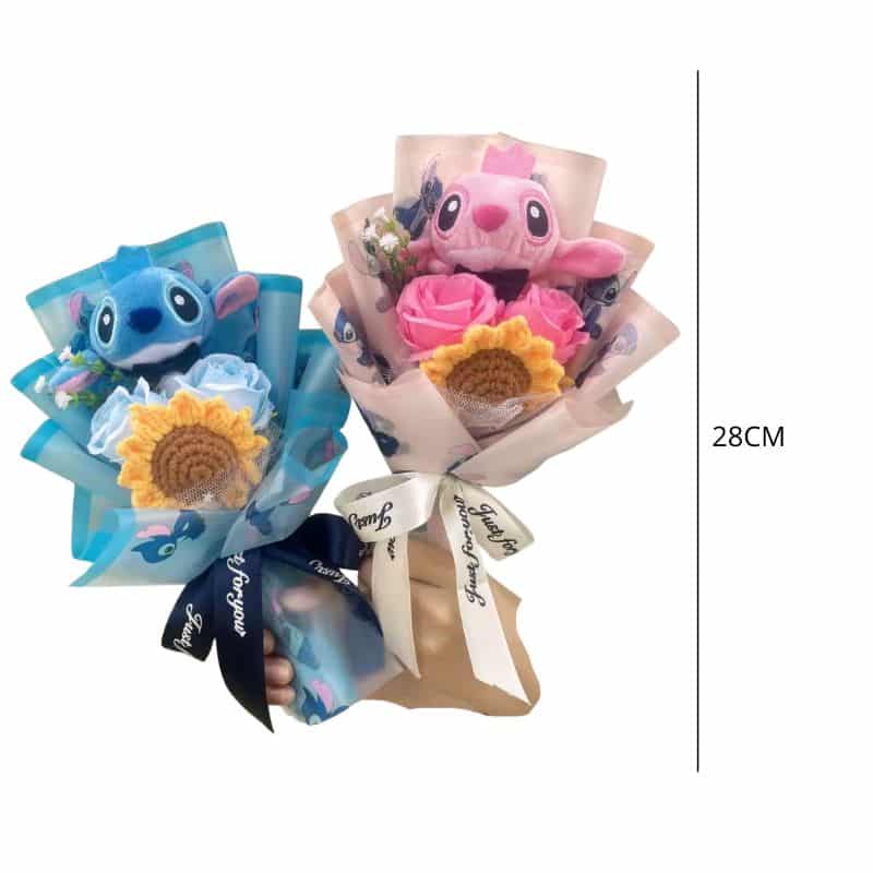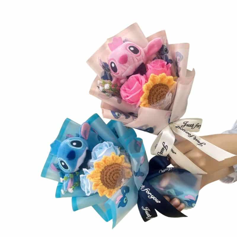 Peluche Stitch et Angel en Bouquet Fleuri