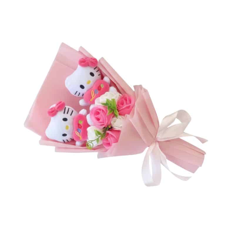 Peluche Hello Kitty Amour Doux en Présentation Bouquet