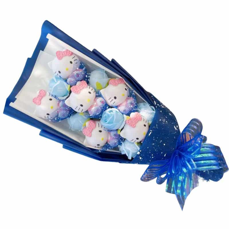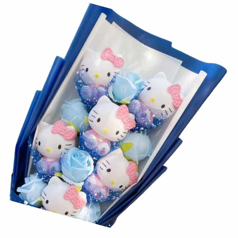 Peluche Hello Kitty en Bouquet Bleu Fleuri