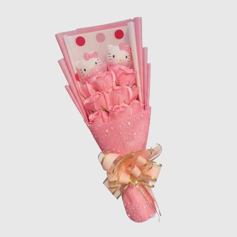 Peluche Hello Kitty en Bouquet Rose Élégant